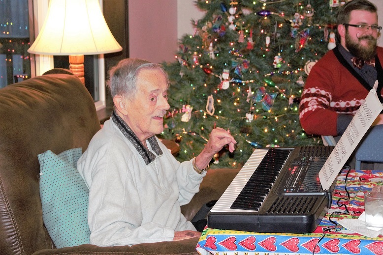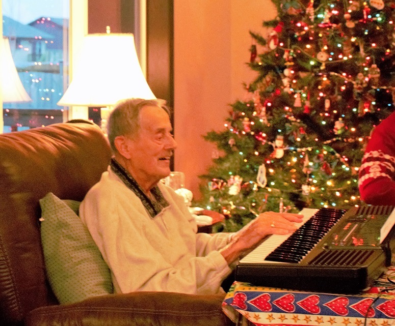 Dad playing the keyboard at Anne and Al's house - Christmas, 2015.